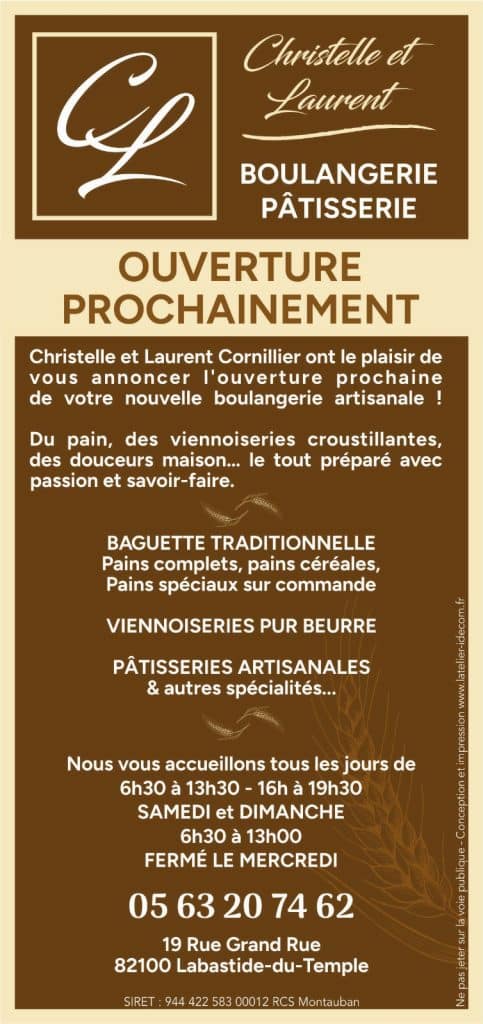 Avec cette ouverture, Labastide-du-Temple retrouve une boulangerie artisanale vivante, symbole de convivialité et de savoir-faire local. Une belle aventure commence pour Christelle et Laurent Cornillier, désormais au service des habitants du village.