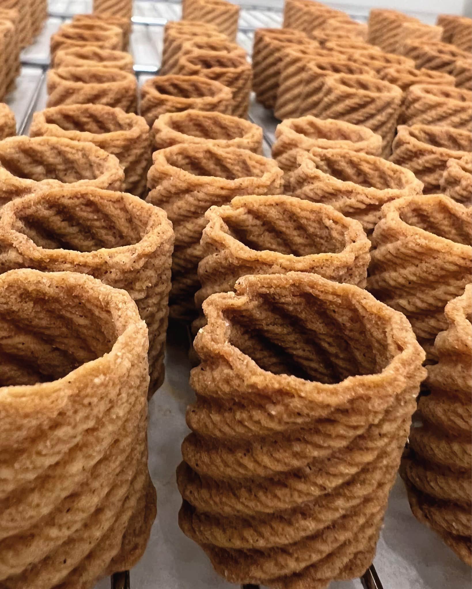 En une dizaine de minutes, la machine dépose minutieusement des couches de pâte. Après un passage au four, les apprentis découvrent un résultat bluffant : des biscuits d’une finesse extrême, impossibles à obtenir à la main.